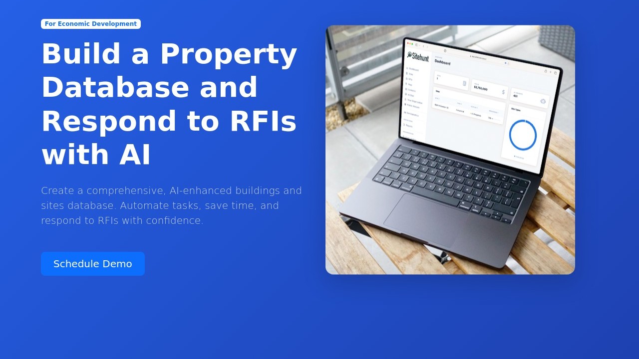 Sitehunt is a sophisticated SAAS platform powered by AI, tailored for economic developers and site selectors. It provides extensive tools for property database management, automating RFI replies, and delivering AI-driven insights to help users gain expertise in their property portfolios. This platform simplifies the task of presenting and evaluating development locations, aiding in the attraction of investments and efficient handling of inquiries. Economic developers can leverage Sitehunt to increase efficiency, boost market competitiveness, and deepen their understanding of properties, ultimately promoting more effective community growth and investment attraction.