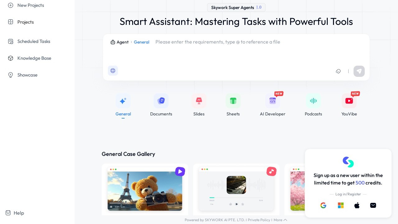 Skywork AI is a cutting-edge AI workspace platform that includes specialized Super Agents to simplify content creation in various formats. Introduced in May 2025, it provides dedicated agents for documents, presentations, spreadsheets, webpages, and podcasts—all driven by proprietary DeepResearch technology, which offers research depth that surpasses competitors by up to 10 times. Professionals and organizations opt for Skywork due to its top-tier research capabilities (ranked #1 on the GAIA benchmark), reliable sources, seamless multimodal outputs, and time efficiency, making it perfect for anyone needing to create high-quality, research-driven content swiftly without compromising accuracy or depth.