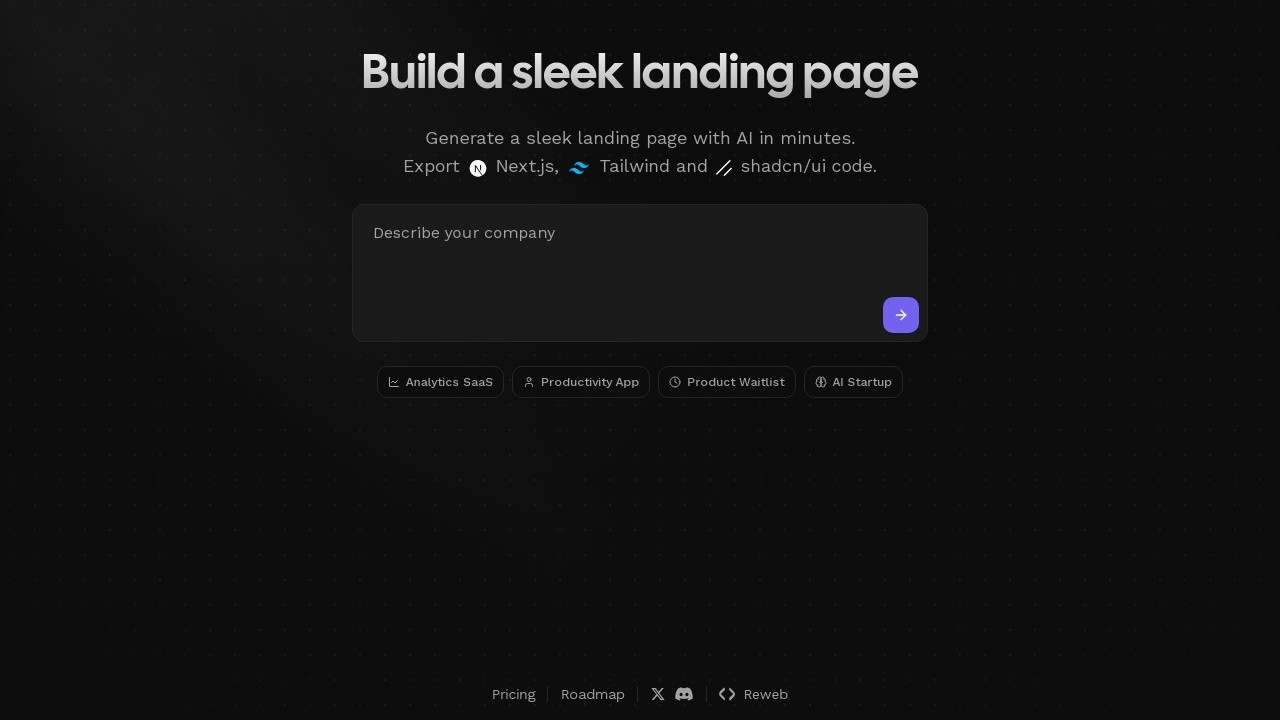 Sleek Design enables users to create landing pages with AI by describing their product or company, whether it's an AI startup or SaaS application. It generates structured landing pages tailored to various business types based on the input provided. Sleek Design allows exporting of production-ready code in frameworks like Next.js, Tailwind, and shadcn/ui, which is beneficial for developers needing quick front-end scaffolding. The platform includes standard components such as pricing, roadmap, and waitlist sections. Aimed at minimizing manual layout creation, Sleek Design produces usable code that can be further integrated or customized for deployment. It functions with minimal input and provides rapid results.