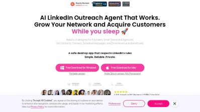 Reachy is a LinkedIn automation tool powered by AI, crafted to assist users in broadening their professional connections, acquiring clients, and generating leads effortlessly. It streamlines outreach by leveraging different triggers, such as registrations for LinkedIn events, group memberships, post engagements, and following competitors. In contrast to potentially hazardous browser extensions, Reachy functions as a secure desktop application compatible with both Mac and Windows, ensuring user privacy and adherence to regulations. It complies with GDPR, is trusted by thousands, and receives high marks for its efficiency in outreach and business growth. Reachy offers a proficient solution for professionals seeking to enhance their LinkedIn interactions and cultivate valuable relationships.
