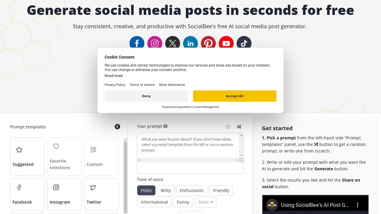 SocialBee's AI Post Generator is a complimentary tool designed to assist users in crafting engaging and innovative content for their social media accounts. It offers a selection of 1,000 pre-designed AI prompts, options to adjust the tone of voice, and enables the creation of multiple post variations from a single prompt. Additionally, it includes features like social media management, scheduling, publishing, and analytics.