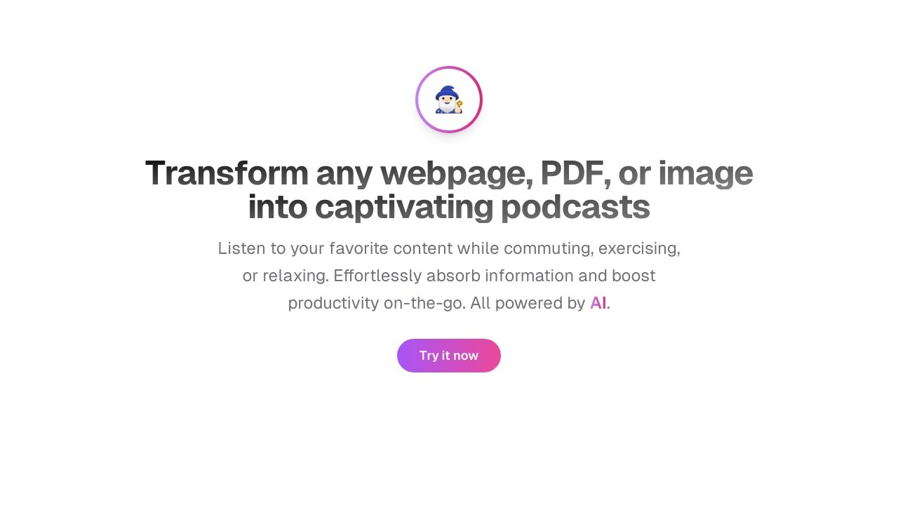 Sonofa is an AI application that turns written material into interactive conversational podcasts. It has the capability to change a variety of texts, including blog posts and academic documents, into audio format in any language. This tool is beneficial for those seeking a more convenient way to access information or looking to broaden the reach of their content. Students, professionals, educators, and content creators can all gain from Sonofa, as it saves time, enhances information retention, and provides an alternative means of engaging with written content. It's especially useful for those who multitask, adapt to diverse learning styles, and need complex information to be more understandable.