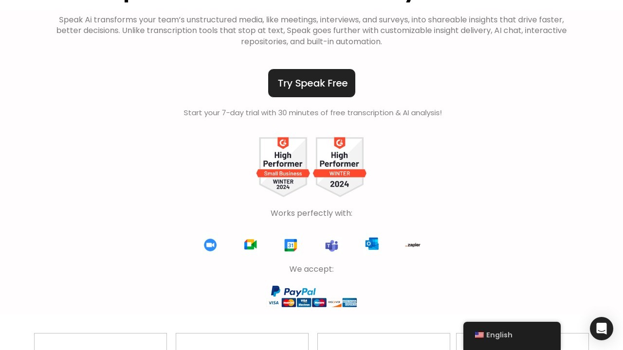 Speak is a platform that facilitates recording, transcription, and analysis without the need for coding, enabling users to derive meaningful insights from audio, video, and text data. It offers automated transcription, natural language processing, sentiment analysis, data visualization, embeddable audio and video recorders, integrations, and Speak Magic Prompts, among other features. Over 50,000 companies, researchers, and marketers rely on it to decrease manual work, gain competitive edges, strengthen customer relationships, and enhance decision-making.