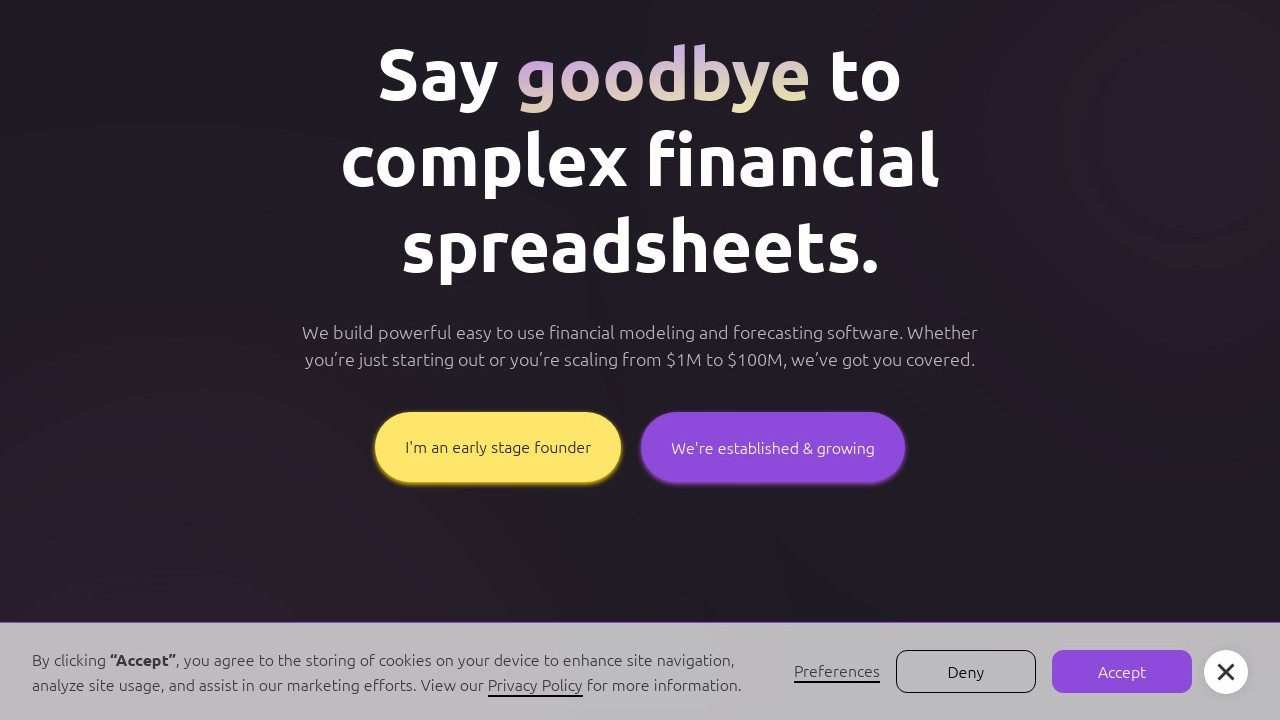 Sturppy is a financial modeling tool tailored for startups and small enterprises, offering templates that enable users to construct financial models without any prior financial expertise. It assists users in creating investor-ready financial models and business plans in less than 30 minutes, and allows for sharing live links with prospective investors or exporting the model to a formatted spreadsheet. The tool provides numerous advantages, such as dynamic team hiring, cap table scenarios, custom KPIs, an investor live link, collaboration options, and a financial dictionary. Sturppy has supported over 4,000 startups and small businesses across 96 countries in building models.