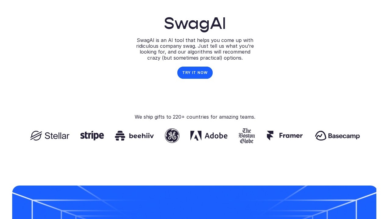 SwagAI is an artificial intelligence tool designed to generate absurd company swag ideas. Simply let us know what you're after, and our algorithms will suggest outrageous (yet occasionally useful) options.