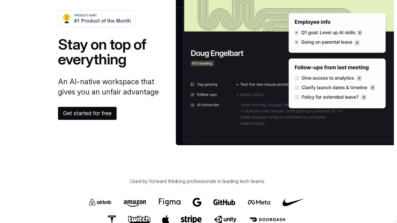 Airgram is a meeting assistant powered by AI that enhances meeting productivity by 10 times through recording, transcribing, and summarizing meetings. It is compatible with Zoom, Google Meet, Microsoft Teams, and face-to-face meetings. Users have real-time access to transcripts, can highlight important moments for easy retrieval, and can share information with team members for collaboration. Airgram includes additional features such as meeting scheduling, built-in agenda templates, action item tracking, and automated post-meeting summaries using GPT-4, which contribute to efficient meetings. The platform also integrates with productivity tools like Slack, Notion, Zapier, and Hubspot to ensure a seamless workflow. Ultimately, Airgram is a robust tool for teams to maintain organization during meetings.