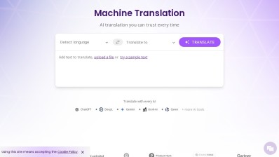 Machine Translation is a digital service that enables users to convert text between different languages. Supporting more than 100 languages, it offers an efficient and precise translation experience. Additionally, it includes features like language recognition and text comparison.