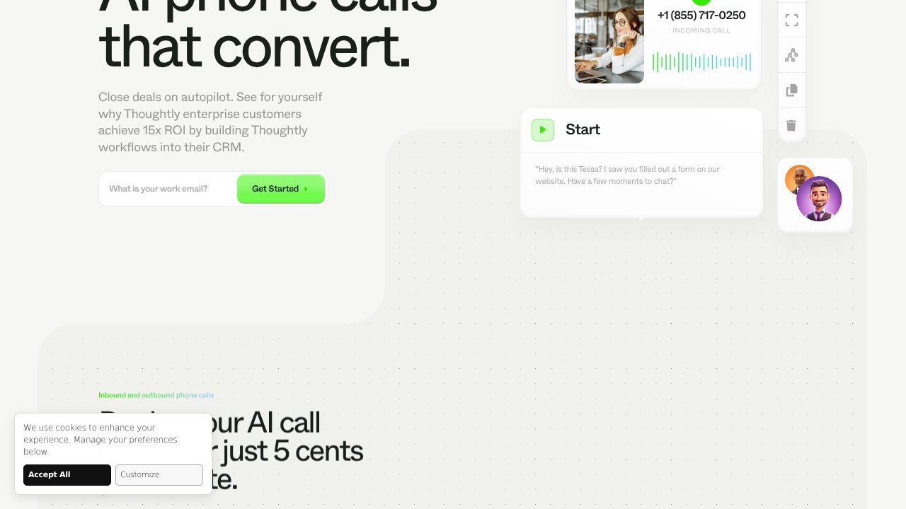 Thoughtly is a platform that allows companies to develop and implement AI-driven voice agents for managing phone calls and SMS interactions. It features a user-friendly interface for creating sophisticated agents that handle inbound and outbound calls, automate customer service processes, and deliver 24/7 support. Companies may utilize Thoughtly to boost efficiency, lower costs, improve customer experience, and acquire valuable insights through data-driven analytics, all without needing significant technical skills.