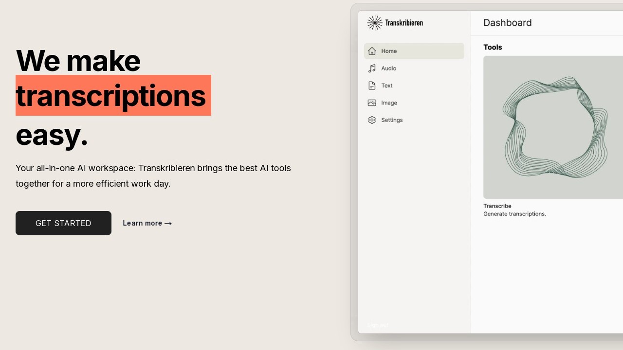 Transkribieren tool offers quick and precise audio transcription services, enabling users to swiftly and effortlessly transcribe audio files in formats like mp3, mp4, mpeg, mpga, m4a, wav, or webm (up to 25MB).