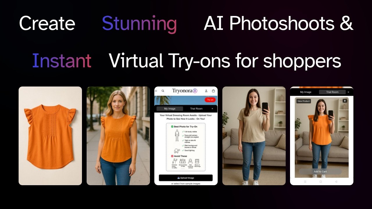 Tryonora AI Model Photo+Tryons is an AI-driven virtual try-on solution designed for fashion e-commerce platforms that converts flat product images into realistic on-model pictures, eliminating the need for professional photoshoots. This tool uses artificial intelligence to create authentic visualizations of clothing on models or even customers who upload their own photos. Fashion retailers can easily integrate this technology into their Shopify stores to improve the shopping experience by allowing customers to more accurately visualize products before purchasing, which helps decrease return rates and boost conversions. By cutting out costly photoshoots and providing an interactive, personalized shopping journey, Tryonora presents a cost-efficient method for merchants to enhance their brand portrayal and tackle the core challenge of online clothing retail: enabling shoppers to confidently see how items will appear on real bodies.