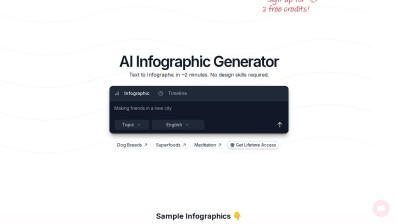 Text2Infographic is an AI-driven tool that quickly converts text into visually appealing infographics in about two minutes, removing the necessity for advanced design expertise. Perfect for bloggers, social media managers, and marketers, this tool enhances content with striking visuals, simplifying complex information and making it more shareable, thereby boosting audience engagement and the success of communication strategies. Users can leverage Text2Infographic to save time, elevate data presentation, and captivate their audience with professional-grade infographics without the typical costs or learning challenges.