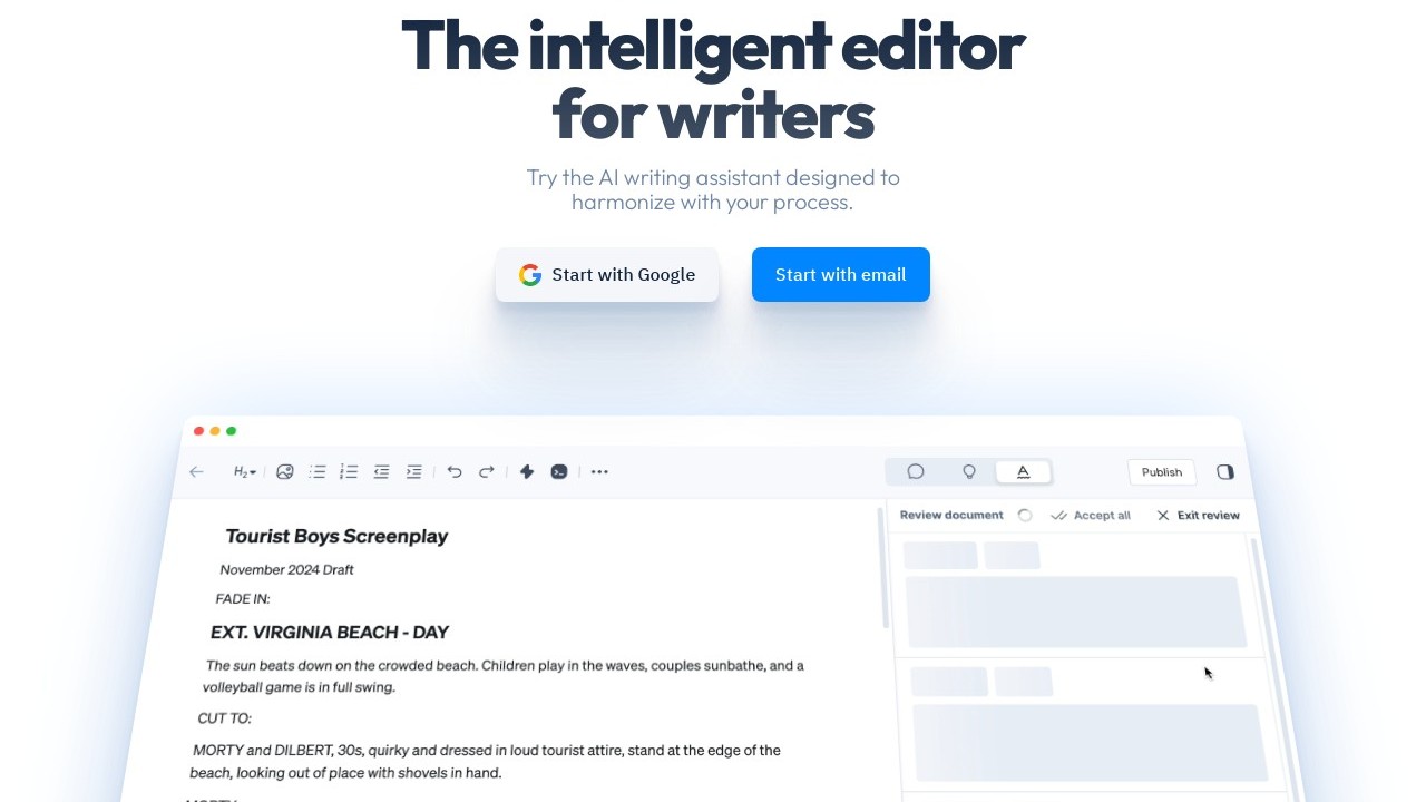 Type.ai is a document editor driven by artificial intelligence that aids users in speeding up their writing through automated editing recommendations. It includes functionalities like spellcheck, grammar correction, and sentence structure advice to assist users in crafting written content swiftly and precisely.