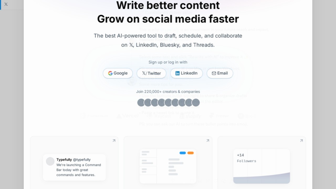 Typefully is an all-encompassing tool for content creation and social media management, tailored for freelancers, content writers, and social media creators. It allows users to compose, schedule, and publish high-quality tweets and threads, offering AI-driven suggestions, analytics, and collaboration capabilities. The primary advantages of the tool include greater efficiency in creating content, enhanced content quality via AI support, comprehensive performance tracking, and the capability to post on multiple platforms. Individuals may opt for Typefully to simplify their social media processes, bolster their content strategy, and ultimately expand their online visibility.