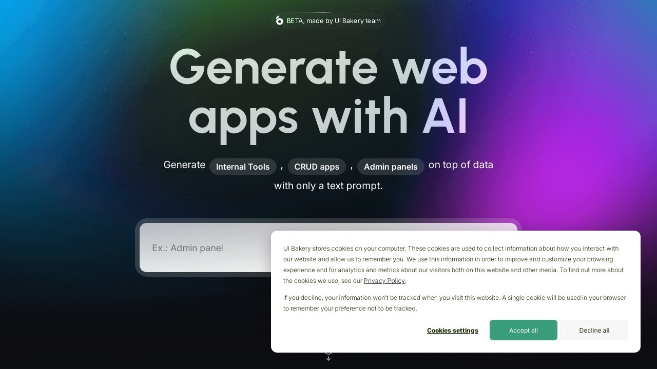 UI Bakery is a low-code platform designed to allow users to quickly build functional, data-driven web applications, such as internal tools, CRUD apps, and admin panels, by just providing a text description of the desired features. This platform is especially beneficial for creating business intelligence dashboards, handling client interfaces, and enabling conversational searches without needing SQL knowledge. Users may choose it for rapidly prototyping and refining app concepts, using its visual low-code editor for additional customization, ultimately saving time and simplifying the app development process.