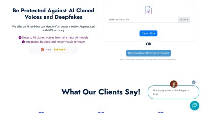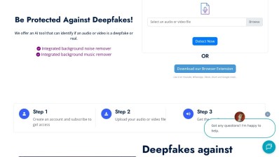 DeepFake Detector is a tool that enables users to identify and confirm the genuineness of videos and audios. It is intended to assist users in defending themselves against deepfakes, which are AI-created videos and audios meant to disseminate false information and mislead individuals. The detector employs professional verification services to assess the likelihood of a video or audio being an AI-generated deepfake or a genuine recording. This provides users with reassurance and ensures the authenticity of audio and video content.