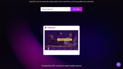 Wisecut is an online automated video editing tool leveraging AI and voice recognition to streamline the editing process efficiently. It seamlessly trims lengthy videos into concise, engaging pieces with added music, subtitles, and facial recognition auto-reframing. Additionally, it employs AI and facial recognition for automatic "punch in" and "punch out," creates transcribed storyboards for easier edits, and incorporates background music with automatic audio ducking to enhance viewer engagement.