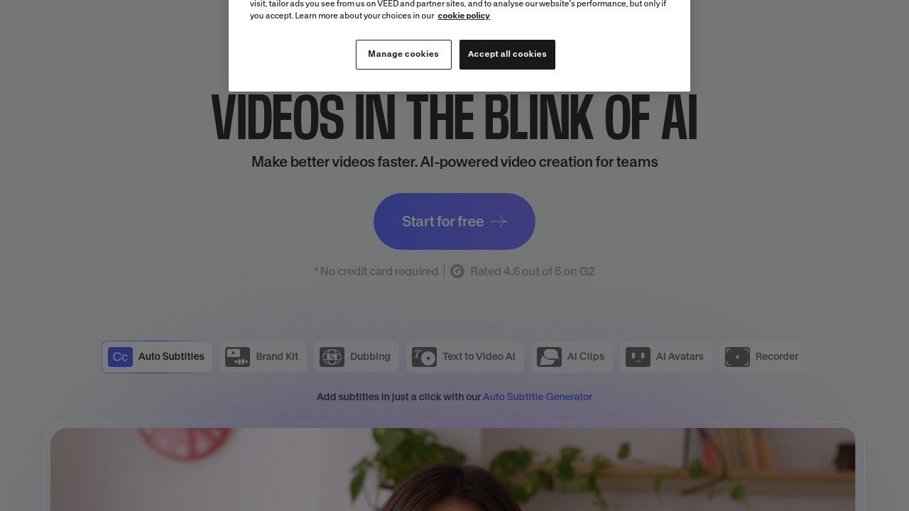 VEED is a web-based video editing platform designed to enable users to produce high-quality videos efficiently. It includes various features like a video editor, screen recorder, and tools for adding subtitles and transcriptions, all aimed at helping users create professional videos. Additionally, it offers resources, such as video tutorials and templates, to assist users in beginning their projects.