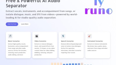 LyRuno is an AI-driven tool for voice separation that extracts dialogue, sound effects, and music from mixed audio in films and other content. It caters to film editors, content creators, and audio professionals who require clean audio components for purposes like enhancing clarity, generating subtitles, or remixing content. With its user-friendly interface, LyRuno delivers high-quality results, saves time in post-production, improves audio quality, and offers flexibility for various audio-related tasks.