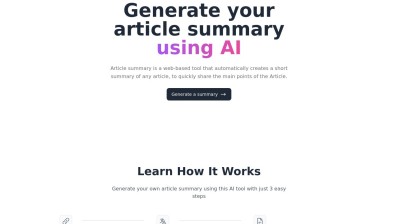 The aforementioned AI application is an online tool designed to generate concise summaries of articles automatically. It enables users to efficiently communicate the key points of an article. Summaries can be produced in English, Arabic, or French. The tool operates through three simple steps: input the article URL, choose the desired language, and create the summary.