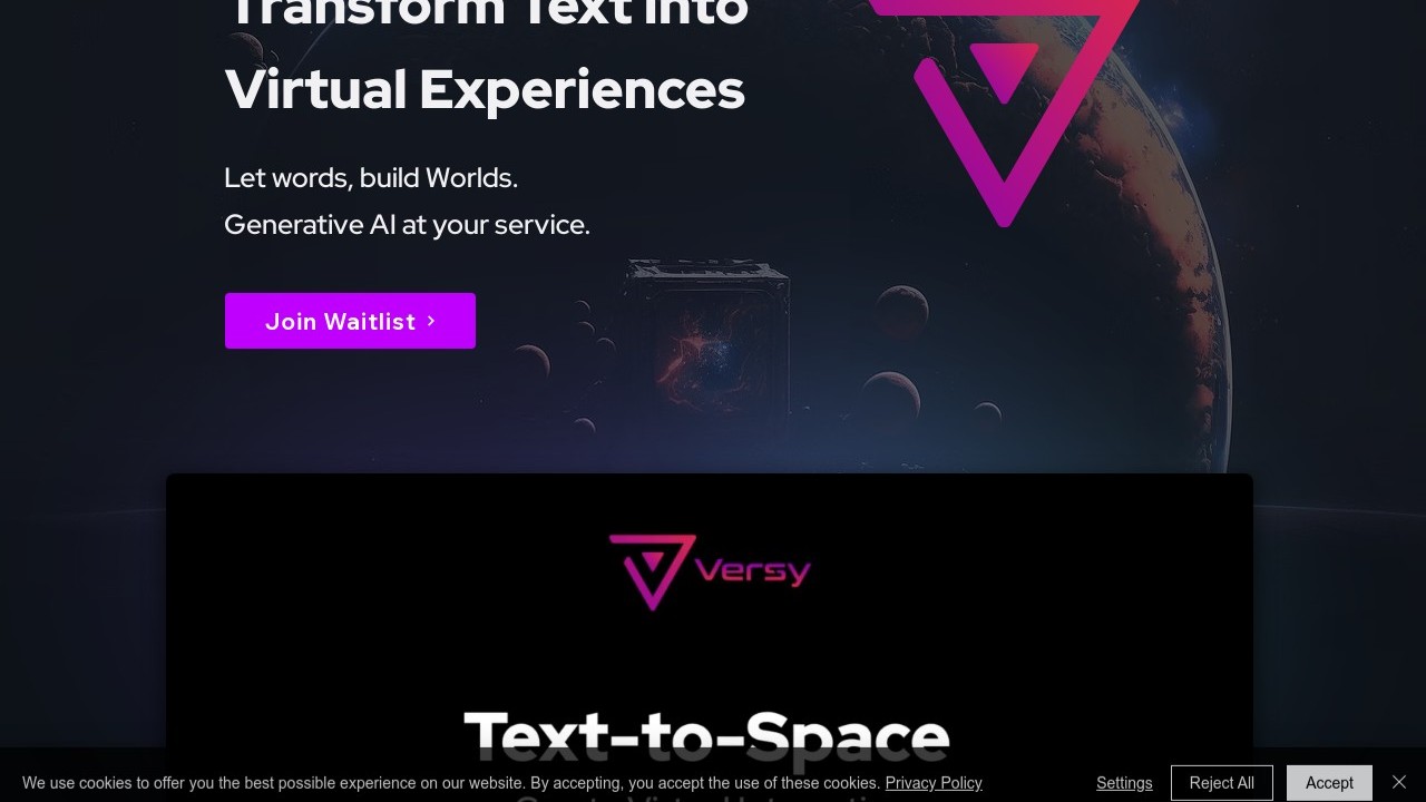 Versy is an AI-driven tool that generates virtual experiences from text prompts. It automates processes to lower expenses linked with the manual creation of virtual environments and provides customizable, data-driven user experiences. Versy enables users to swiftly explore various versions of their concepts and manage several virtual experiences simultaneously. It can develop interactive experiences of any type, including product configurations, events, escape rooms, leaderboards, treasure hunts, and more.