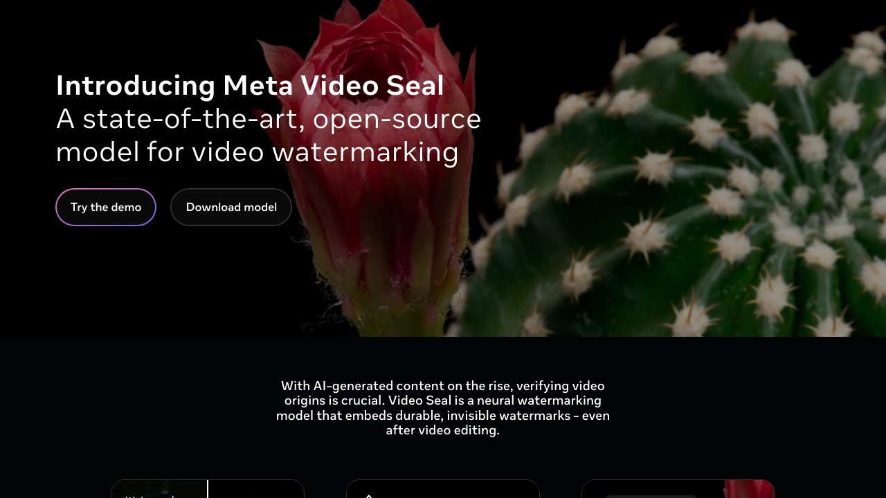 Video Seal is an open-source video watermarking tool created by Meta, designed to embed subtle yet strong watermarks into videos efficiently. It employs an innovative "temporal watermark propagation" method to decrease processing time while ensuring resilience against various video alterations. Content creators, media companies, and others interested in video authenticity and ownership can utilize Video Seal to safeguard their content, confirm its origin, and fight deepfakes, making it an essential resource in the age of growing digital content manipulation.