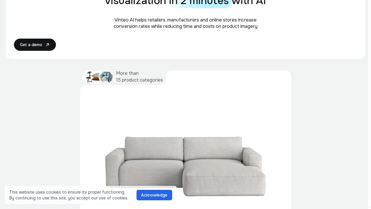 Vinteo AI is a sophisticated AI-driven solution aimed at improving product photography and visualization, especially beneficial for e-commerce companies. It enables users to customize product appearances, conduct AI editing, craft unique scenes, and produce top-quality images. This tool is intended to reduce the time and expenses related to conventional product photography while boosting conversion rates through attractive and lifelike product visuals. Companies across different sectors, including furniture retail and interior design, can take advantage of Vinteo AI's capability to swiftly and effectively generate professional, tailored product images, providing them with a competitive advantage in the online market.