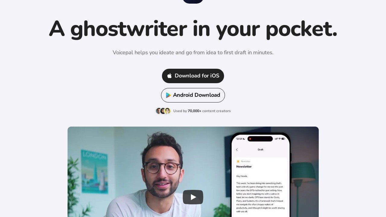 VoicePal is an AI-driven tool designed to transform verbal thoughts into well-crafted written material. This assistant transcribes speech in real time, organizes concepts, poses insightful follow-up queries, and produces drafts while accommodating the user's distinctive voice and style. It is favored by content creators, bloggers, video producers, and professionals because it significantly boosts productivity (speaking is three times faster than typing), helps overcome writer's block, enables on-the-go content creation, and maintains the creator's genuine voice instead of generating standard AI content. It's perfect for individuals who articulate their ideas better verbally than on a blank page.