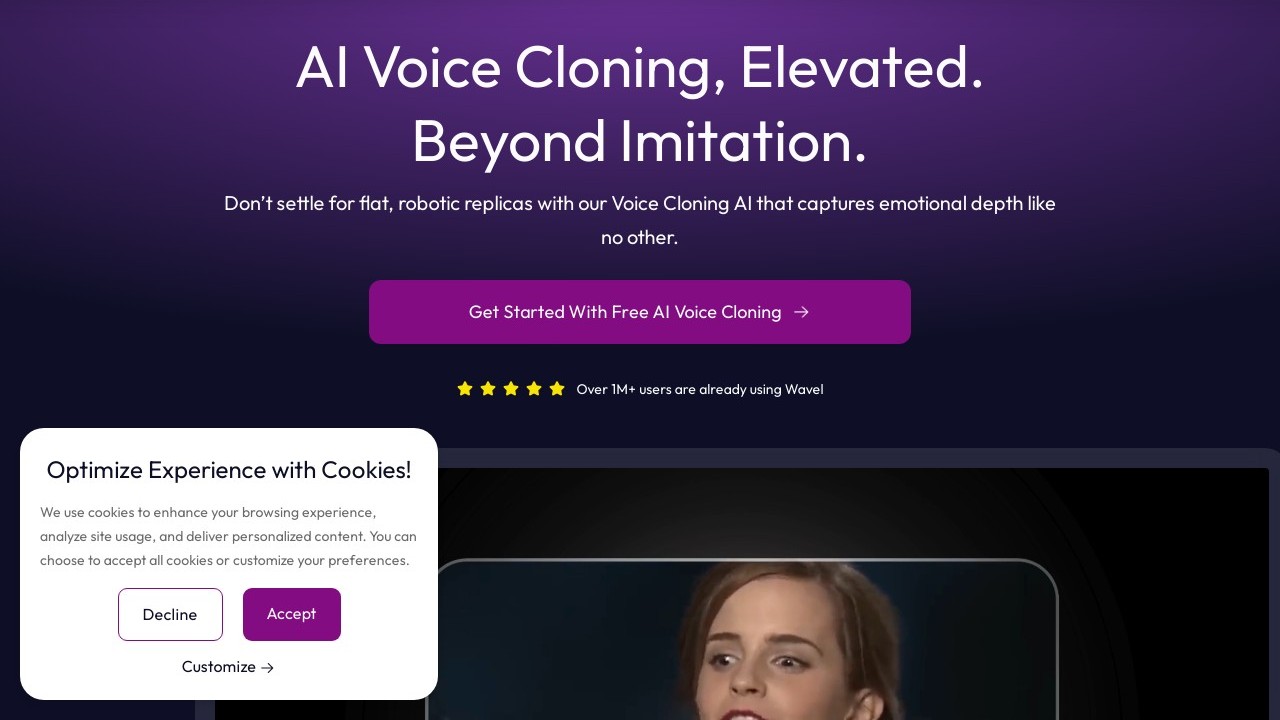 Wavel AI provides a voice cloning tool that utilizes AI algorithms to replicate voices. This software allows users to create realistic and naturally-sounding voices that accurately reflect the distinct qualities of the original speaker. It can be applied in various contexts, including virtual assistants, audiobook narration, video voiceovers, and bespoke text-to-speech solutions. Additionally, Wavel AI's voice cloning tool includes editing features to refine the voice clone output and offers tutorials and customer support to guide users through the process.