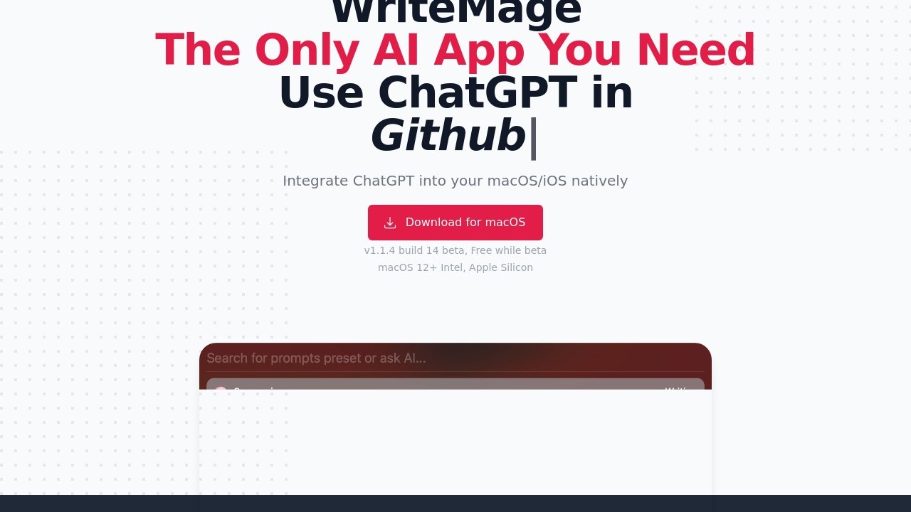 WriteMage is a robust AI application designed to enhance productivity within any macOS or iOS application. Leveraging ChatGPT technology, it retains conversation history to provide relevant responses. During the beta phase, it is available for free, with a 25% discount on the launch sale valid until March 15, 2023. The app is seamlessly integrated with the iOS keyboard, and users can make an in-app purchase to utilize their own API key in the WriteMage iOS app. The lifetime package covers both macOS and iOS apps, removing the necessity to handle the API component.