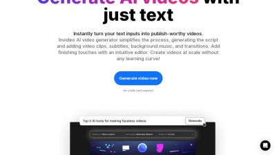 Invideo is revolutionizing video creation. With generative AI, you can transform any concept into a complete video using just text prompts. From scriptwriting to visuals, voiceovers, and music, Invideo handles the technical details, enabling you to concentrate on your creative ideas. Whether you're a creator, business leader, or storyteller, Invideo empowers you to realize bold ideas easily and confidently.