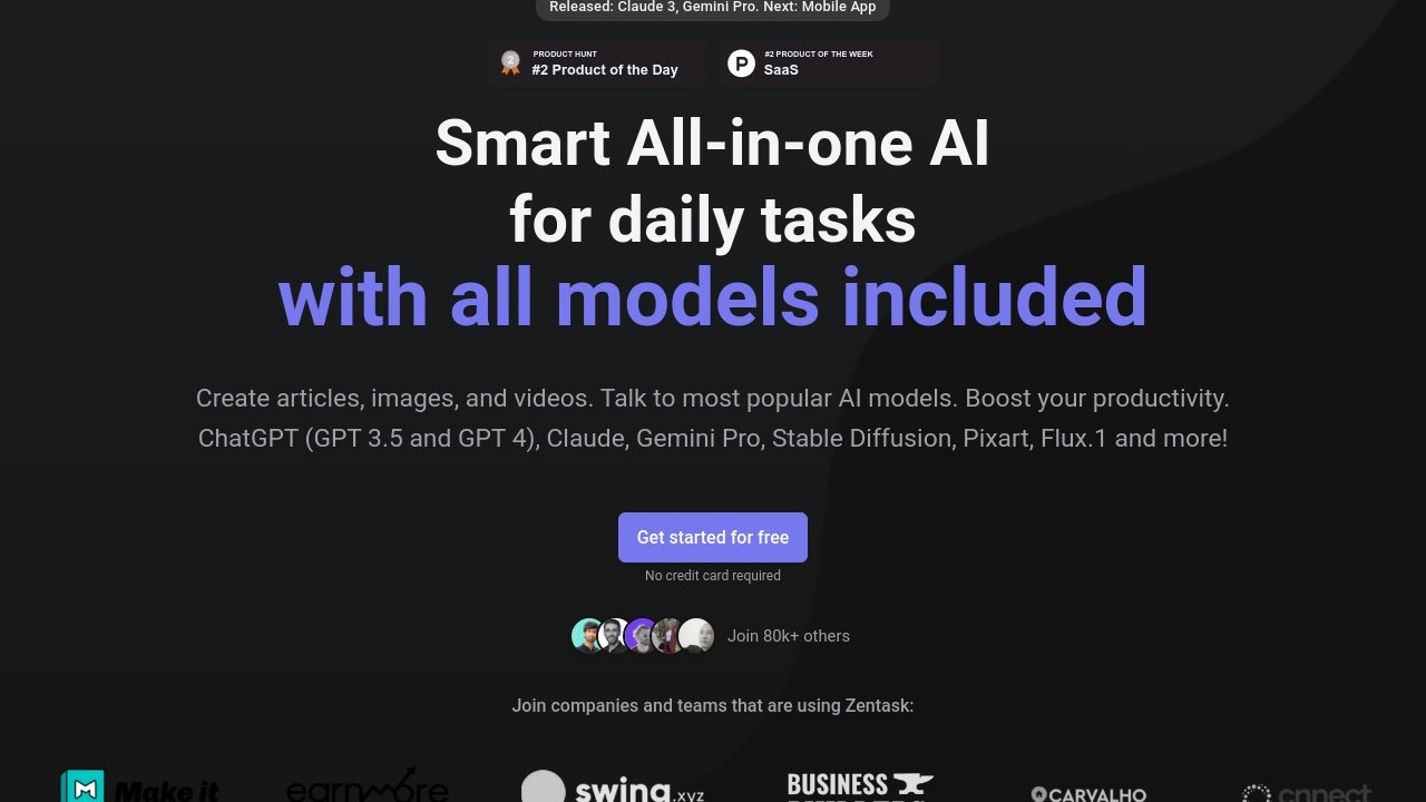 Zentask is a platform providing user-friendly AI tools designed to streamline work and everyday activities. It includes an intuitive interface, a wide array of prompts, image generation capabilities, and innovative features to enhance productivity. The platform caters to writers, marketers, engineers, students, creators, advertisers, business owners, and others, offering tools for generating images from text, creating templates, crafting structured and creative website content, and accessing resources like academic essay outline generators, coding instructions, paraphrasing tools, and more. Prompt engineers can also monetize their work on Zentask by developing and selling prompts in the marketplace. Zentask is currently available for free, but a PRO subscription is required to use ZenSpaces and access a premium-quality AI model.