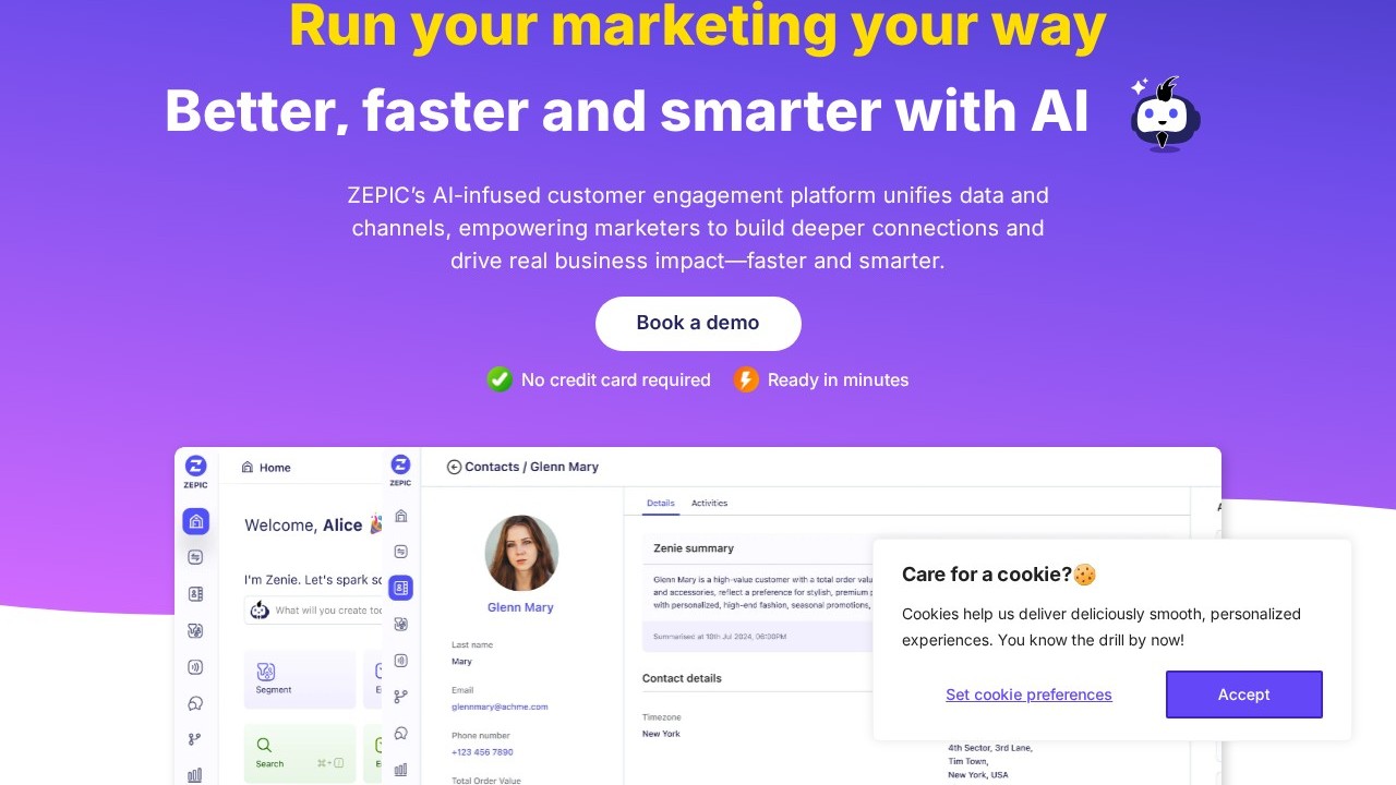 ZEPIC is an AI-driven customer engagement platform that consolidates data from more than 50 digital tools into one Customer Data Platform. This allows businesses to automate marketing processes and create personalized campaigns across various channels such as Email and WhatsApp. The platform's AI engine, Zenie, simplifies everything from data management to content creation, enabling marketing teams to form highly targeted audience segments and provide real-time, personalized customer experiences without technical challenges. Companies utilize ZEPIC to dismantle data silos, automate mundane tasks, and implement advanced multi-channel marketing strategies that enhance engagement and conversion rates.