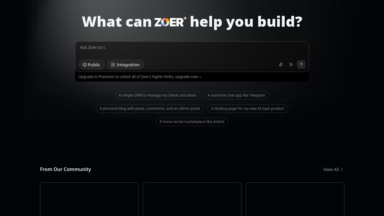 Zoer is an AI-based tool that assists users in creating internal tools tailored to their needs. It enables the creation of custom applications or workflows for organizations without requiring advanced technical skills. The platform is designed to simplify and accelerate the tool creation process, making it accessible to both individual users and teams. The basic version of Zoer offers an entry-level functionality, while a premium upgrade unlocks higher usage limits and additional advanced features. Zoer emphasizes flexibility, scalability, and practical utility, allowing users to develop tools that meet their specific business or personal requirements.