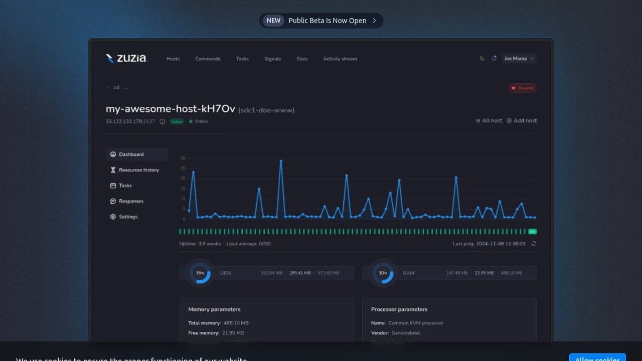 Zuzia is an intuitive server and website monitoring solution crafted for developers, server admins, and site owners. It provides real-time performance monitoring, custom command execution, task scheduling, and AI-based alerts, all within a unified dashboard. Users may opt for Zuzia due to its straightforward monitoring method, automation features, proactive management options, and affordability, making it ideal for individuals or expanding projects looking for an effective, user-friendly tool to manage their digital infrastructure.